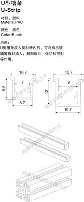 U型槽條放入型材槽內后,可將有機玻璃等板材插入,起到緩沖、保護和密封等作用。